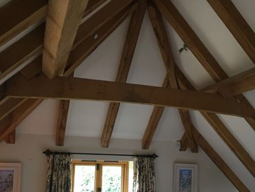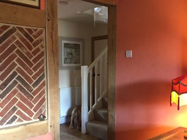 Candle Cottage is a modern oak framed dwelling located on the fringe of the historic village of Ulcombe Kent. The property was built in the late 1990s to replicate a traditional oak framed house, using vernacular materials. The property was one of 3 built by Cox Restorations